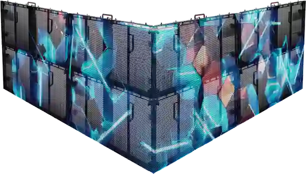 The ORION cabinets are beveled at a 45° angle, and come with curve locking systems on the sides that allow you to choose the inward or outward curvature of your LED application up to 90°. This helps create seamless creative curved screens, combined with a certain amount of aesthetic transparency.