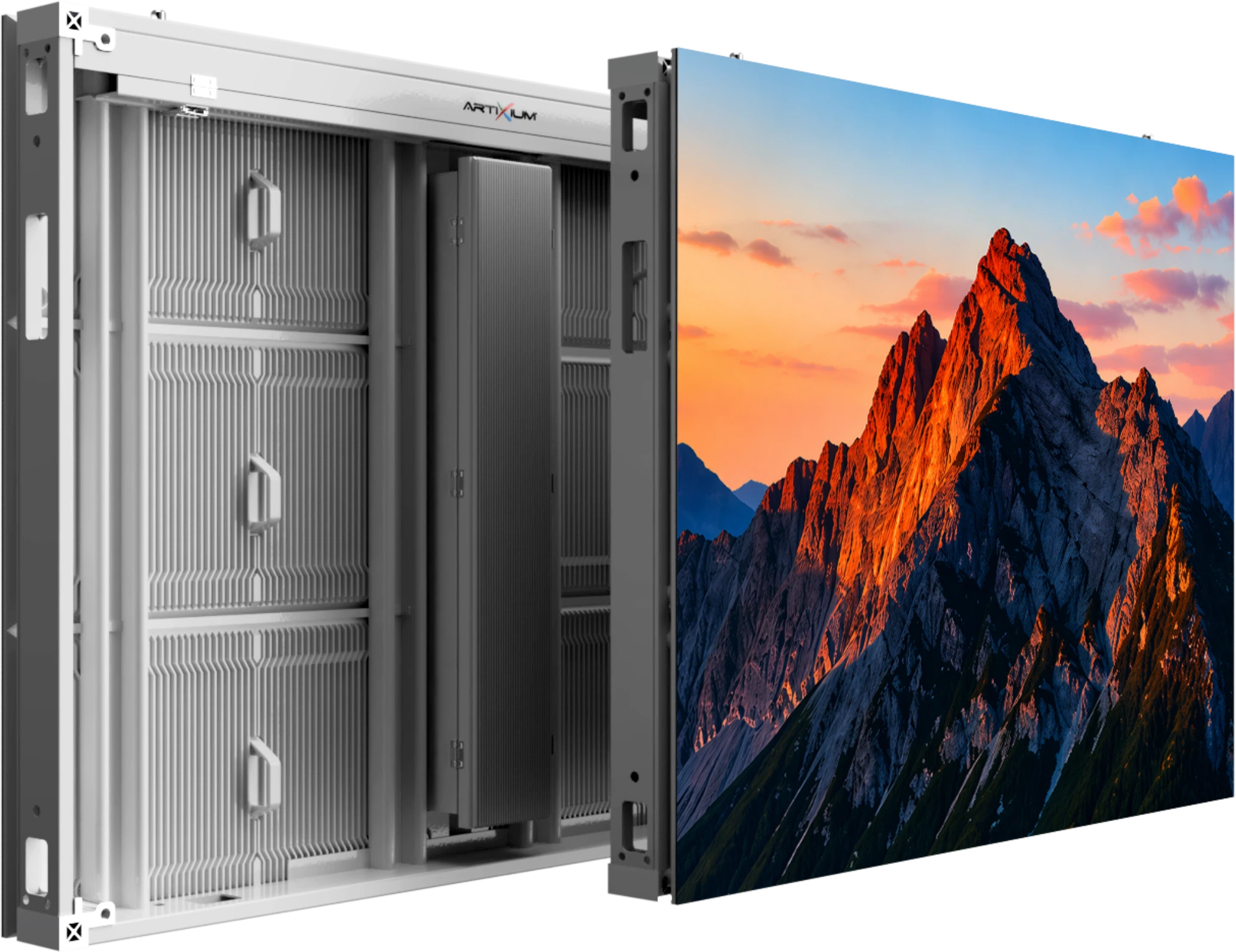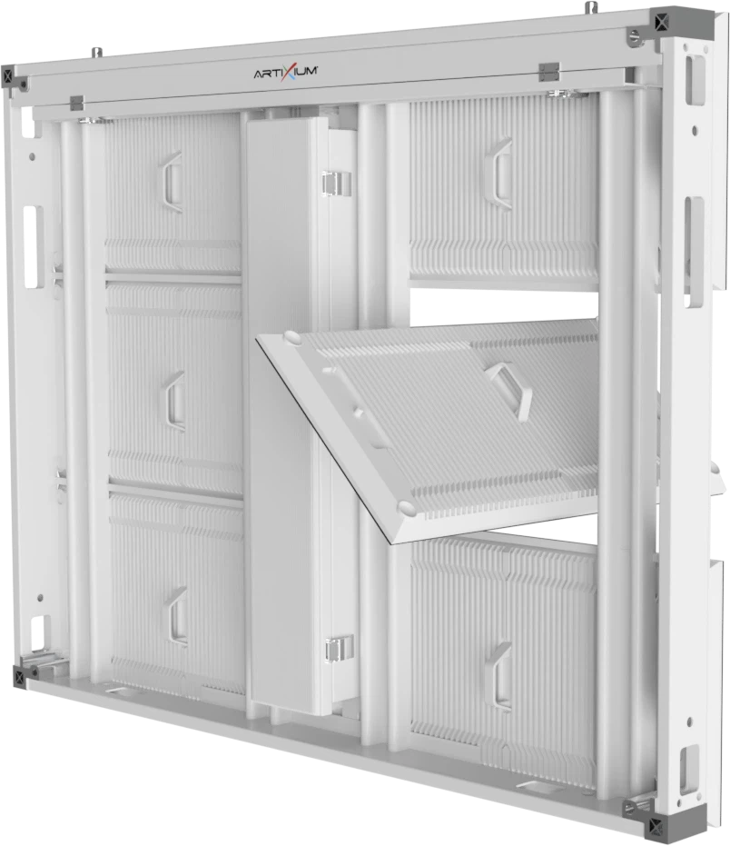 The THORITE 3.0 is available in multiple cabinet formats, all fully compatible with one another, allowing seamless adaptation to any type of structure. Its modular design enables easy custom integration, whether for flat surfaces, angles, or complex structures, while ensuring perfect visual continuity.
