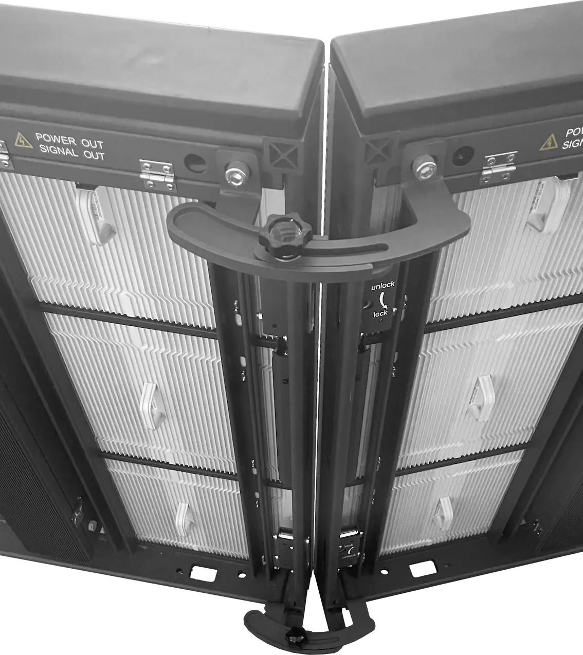 Connecting plates were specially conceived to assemble eight angle NEIPATEC ® ST cabinets together to form a 90° angle at your stadium’s corners. It’s a user friendly device that allows you to lock two cabinets together at any given angle, offering a smooth and aesthetic curve to broadcast your visual content all around your stadium.