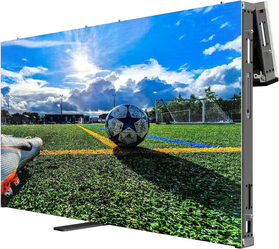 OUTDOOR Product Parameters Unit 6.2 6.6 8.3 10 Pixel Pitch mm 6,25 6,67 8,33 10,00 LED   SMD3535 Application   Outdoor extended perimeter system Ingress Protection IP IP68 (Front) / IP66 (Rear) Brightness cd/m² ≤ 7500 Color Temperature after calib (adjustable) deg. K 6500 Viewing Angle (50% brightness) deg. 160 H / 160 V Cabinet Size (WxHxD) mm 1600 x 1238 x 105 Display area (WxH) mm 1600 x 1200 Module Size (WxHxD) mm 400 x 300 x 20 Pixel Matrix Per Cabinet (WxH) px 256 x 192 240 x 180 192 x 144 160 x 120 Pixel Matrix Per Module (WxH) px 64 x 48 60 x 45 48 x 36 40 x 30 Pixel Density px/m² 25600 22500 14400 10000 Weight kg 73.6 Cabinet Material   Die-casting aluminum Maintenance Mode   Front & Rear Mask specification   95% Rubber + 5% Fiber / SS Screws / Shockproof shaders Contrast Ratio   High Grey scale (linear) bit 16 Brightness control bit 16 Processing depth bit 16 Color   281 Trillions Display Refresh Rate Hz 3840 Operation Power V AC90-260V Max. Power Consumption W/m² 550 Average Power Consumption W/m² 200 Control Mode   Synchronization Video Frame Rate Hz 50/60Hz Input Types Supported   DVI / SDI / HDMI 3D ready (optional)   Yes Calibration   Yes Lifetime (50% brightness) h 50000 Operating Humidity Range   10-90% Operating Temperature Range   -20°C / +60°C Screen Uniformity Correction   - Certification   CE (LVD, EMC), ETL,CB Available options   Gold wire, corners Compatibility    No ">