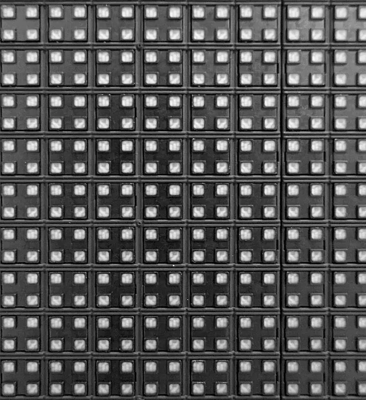 La technologie MiniLED 4en1 consiste à encapsuler 4 LEDs miniatures dans l’espace qu’occupe une LED SMD traditionnelle. Cette technologie offre de nombreux avantages, dont les plus flagrants sont les gains énormes en résolution d’image et en durabilité. Le premier point est assez évident, puisqu’on multiplie par 4 le nombre de LEDs sur vos modules. Le second est explicable par l’encapsulation, qui fonctionne comme la technologie GME, mais au niveau d’un groupe de 4 LEDs plutôt que sur tout un module. Tout en ajoutant à la résistance des LEDs, cela permet à un technicien qualifié de réparer chaque MiniLED 4en1 individuellement, lorsque cette opération est infiniment plus complexe sur un module GME.