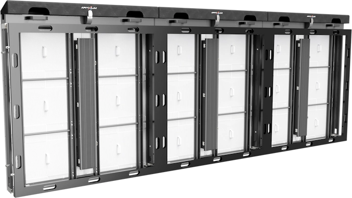 Une fois les cadres de montage avec option de maintenance par le haut installés, grâce à un système de cadre et de goupilles, chaque caisson placé sur ceux-ci sera parfaitement aligné et assemblé aux autres, offrant aux spectateurs de vos matchs une expérience visuelle irréprochable pour chacun des messages de vos sponsors. Des vis latérales supplémentaires peuvent être ajoutées afin de renforcer encore davantage le maintien, bien qu’elles ne soient pas nécessaires pour obtenir un résultat parfait.